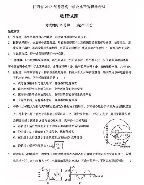 2025年江西省高考真题及答案PDF电子版完整汇总【含试题解析】