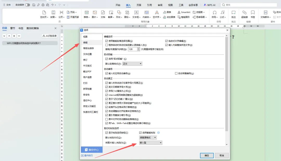 WPS文稿里如何自由选中多张图片? 我们在文稿里经常会插入多张图片,但是有时候我们每次选择这些图片的时候只能选择一张,本期分享下如何一次自由随意选择图片的数量↓ 先说下是什么原因导致的不能一次选择多张的原因,是因为我们插入的图片是嵌入式的↓ 我们需要将这些图片改成浮于文字上方↓ 设置方法↓ 点击文件→选项→编辑→设置浮于文字上方 这时候我们在插入到文稿里的图片就是可以随意选择和移动的了,我们按住Ctrl键,鼠标左键,点击想要选择的图片即可~