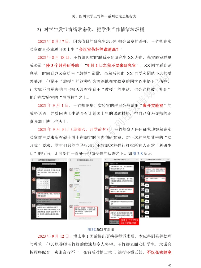 近日,四川大学机械工程学院特聘研究员、博士生导师王竹卿,被其课题组多名在读博士、硕士研究生联合举报,引发全网广泛关注。