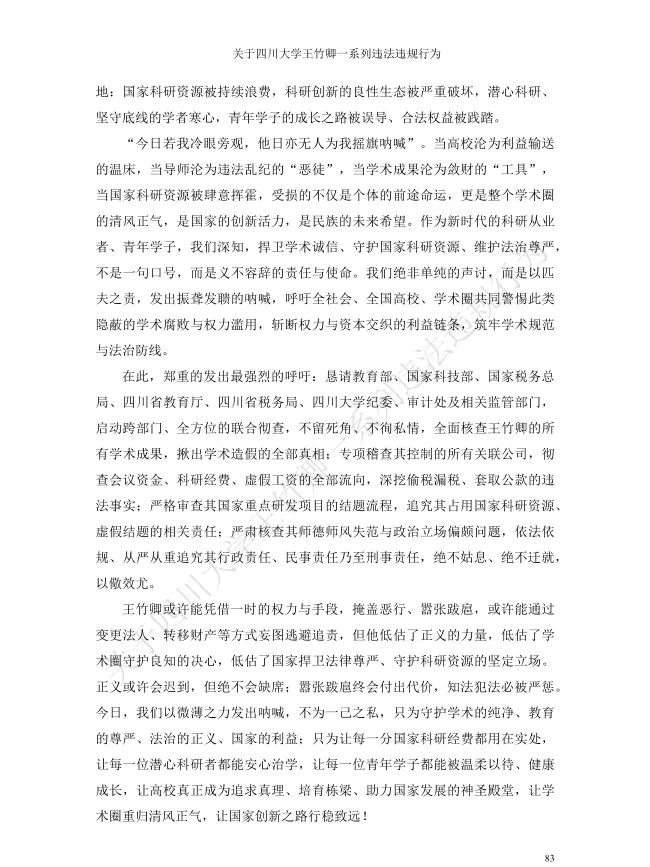 川大王竹卿被学生联合举报事件,是一场对高校学术诚信、师德师风和管理水平的考验。