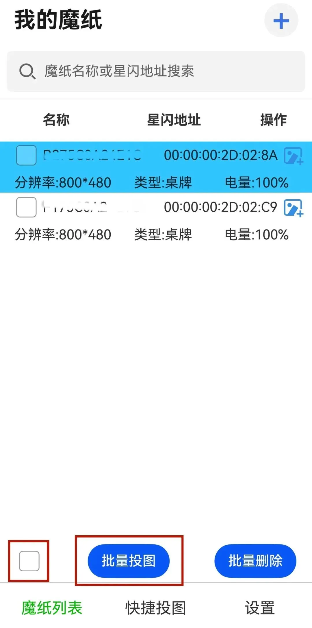 2、选择②“扫码投图”,扫描桌牌的MAC地址