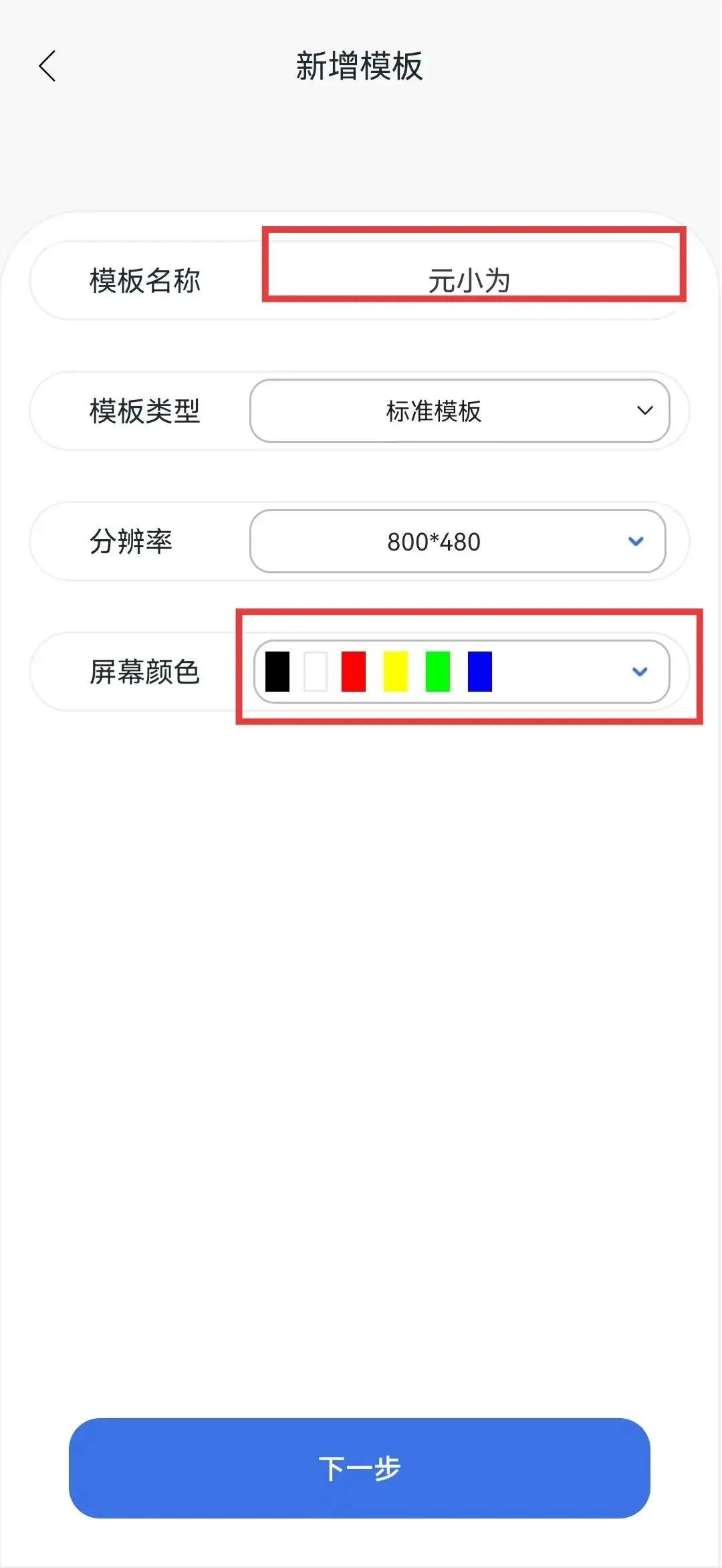 如手机不支持NFC,请按页面提示,如右图选择屏幕颜色、分辨率。