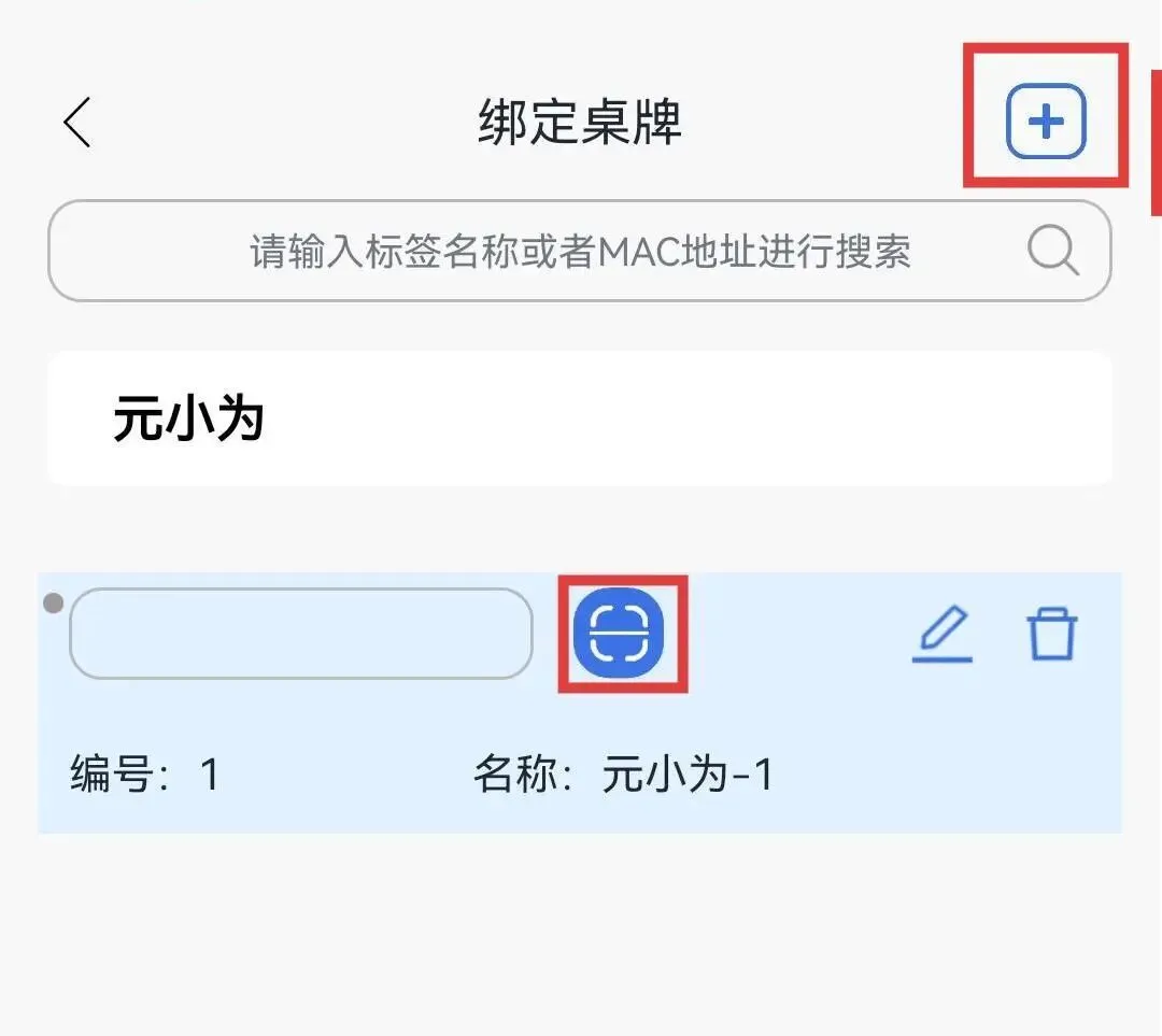 4、点击扫描标识,扫描桌牌设备的MAC码,进行绑定