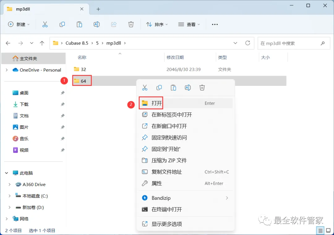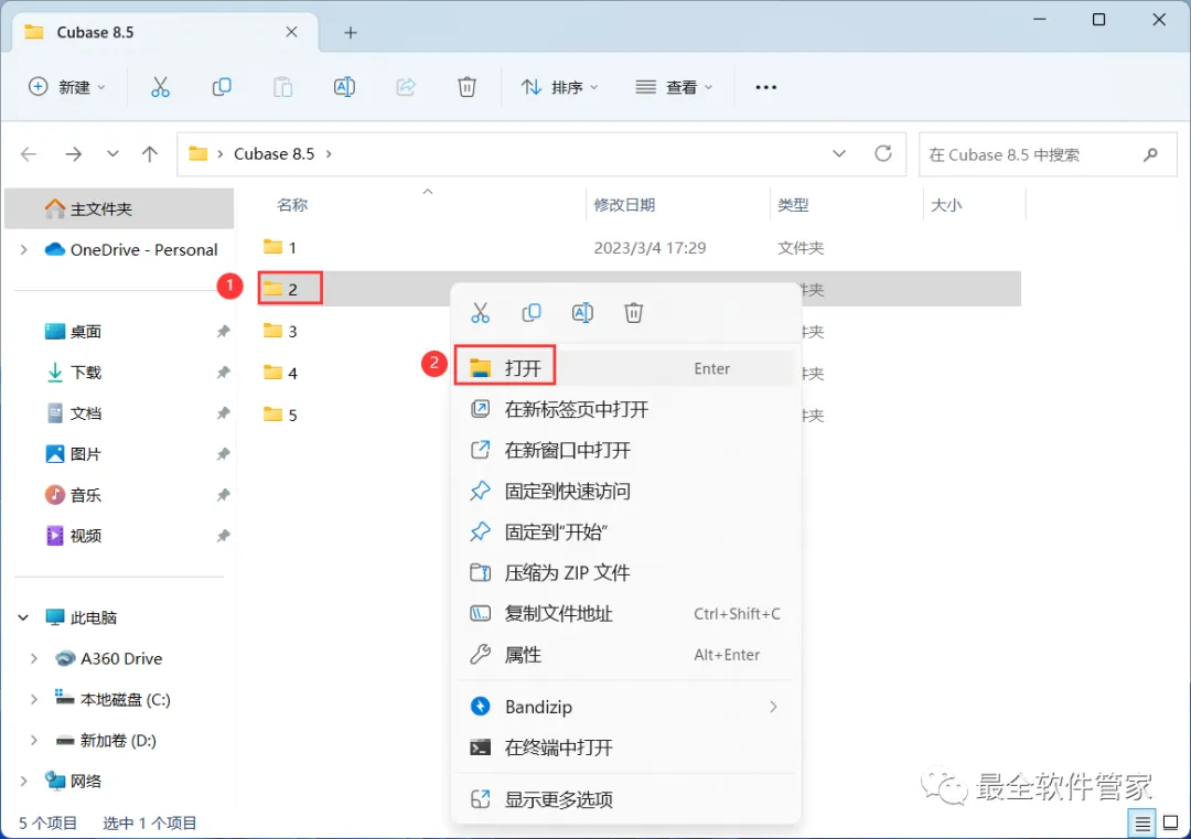 16、回到Cubase 8.5文件夹,找到【2】文件夹,右键【打开】它