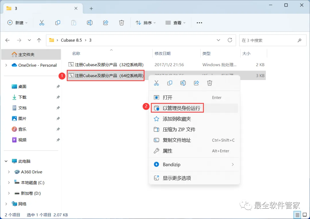 24、找到【注册Cubase…】程序,右键选择【以管理员身份运行】它