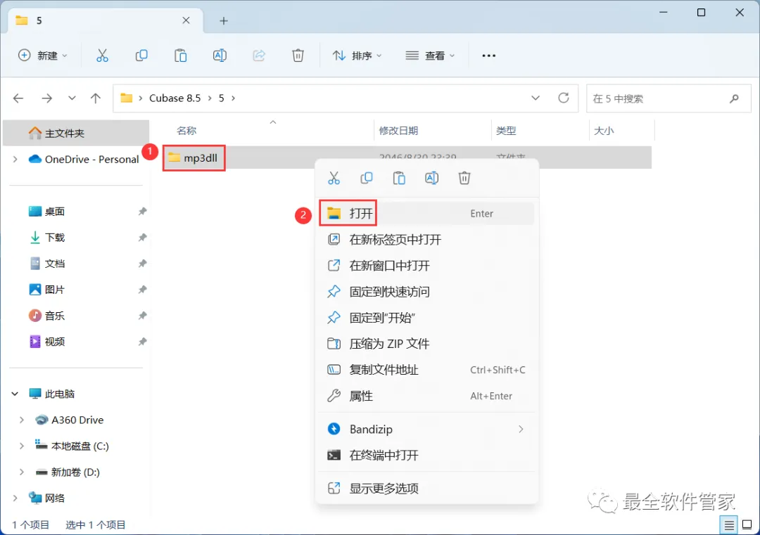 23、回到Cubase 8.5文件夹,找到【3】文件夹,右键【打开】它