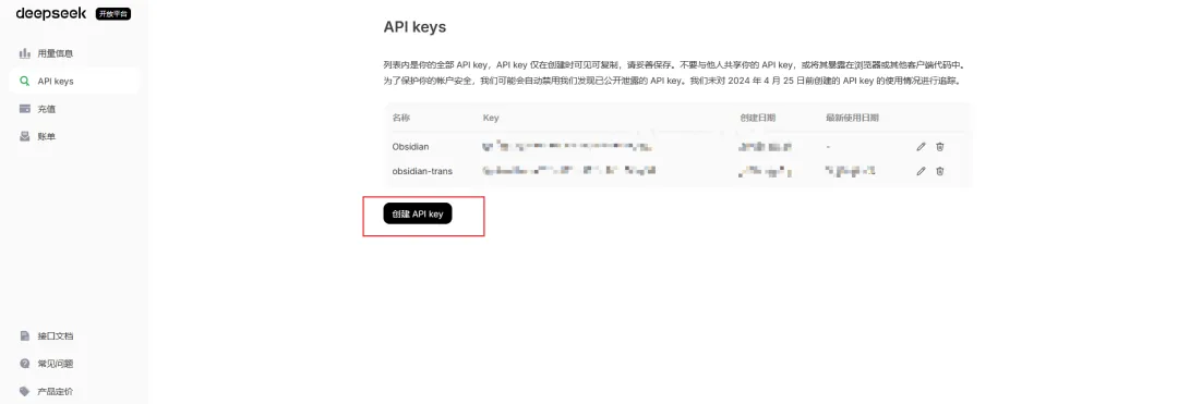 API Key: 填入您的 DeepSeek API Key。通过在 DeepSeek 开发平台获取。