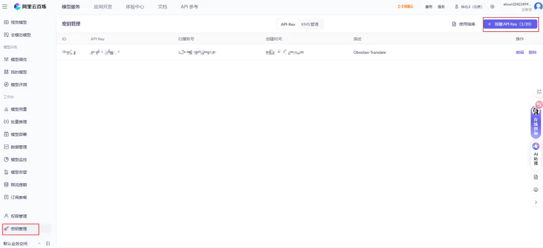 API Key: 填入您的阿里云 DashScope API Key,通过在阿里云百炼获取。