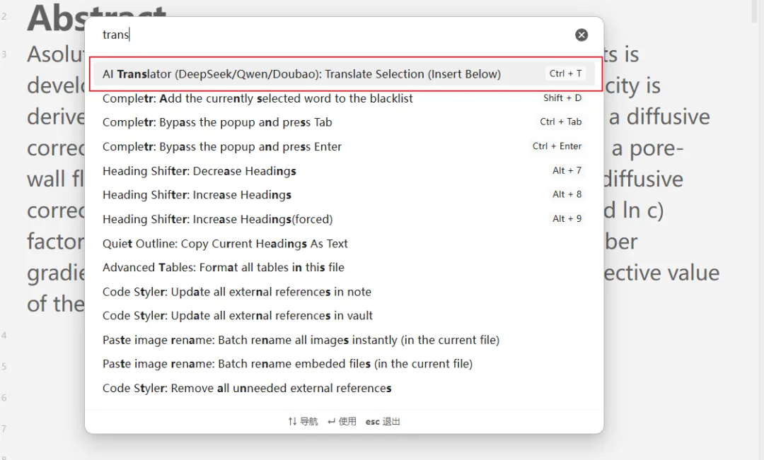 尽管 Obsidian 社区已有不少翻译插件,但实测中,多数插件依赖的翻译接口在准确性和语境贴合度上常不尽人意。相比之下,当前各类 AI 窗口(如 DeepSeek (V3/R1)、通义千问 (Qwen) 和 豆包 (Doubao) API 等)的翻译结果往往更贴近原文语义与学术表达。