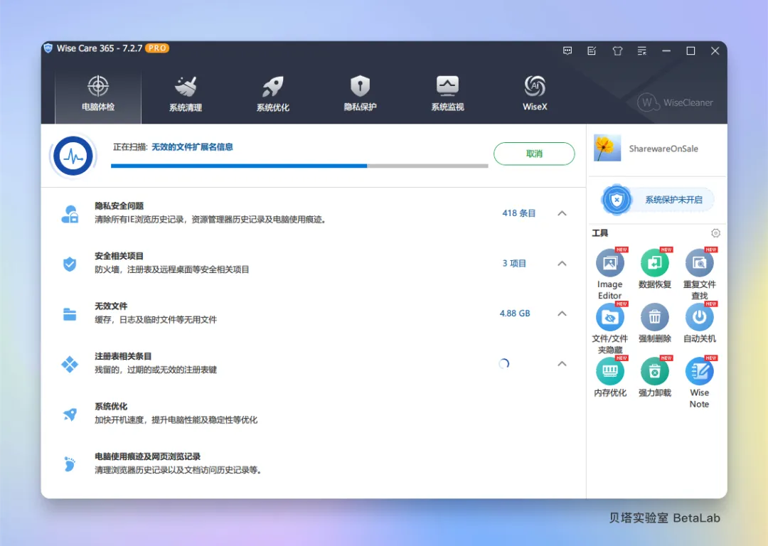 先说说它的核心功能。Wise Care 365 Pro 最拿手的本事就是 “大扫除”。它能深度清理电脑里的垃圾文件、无效快捷方式、冗余系统文件,而且绝对不会误删你的重要数据。比如那些藏在系统角落里的临时文件、缓存文件,还有浏览器里堆积如山的缓存和 Cookies,它都能一键清理干净。更厉害的是,它还能帮你整理磁盘碎片和 Windows 注册表,让系统运行更高效。