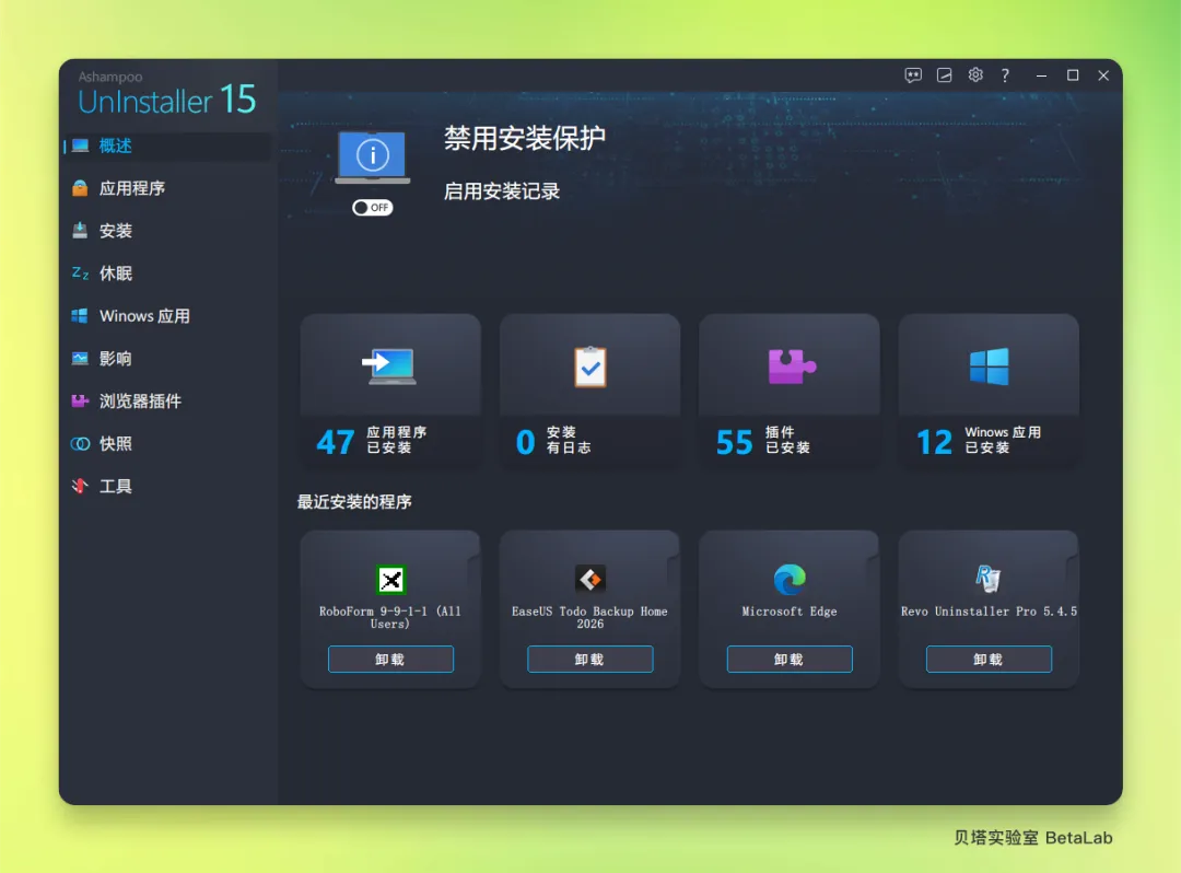 实时安装监控:这是其核心特色功能。在安装新软件前启动 “安装监控”,软件会创建一个系统快照,记录所有文件、文件夹、注册表项和系统设置的更改。卸载时,它能依据此记录进行精准、彻底的逆向删除,几乎不留任何残留。