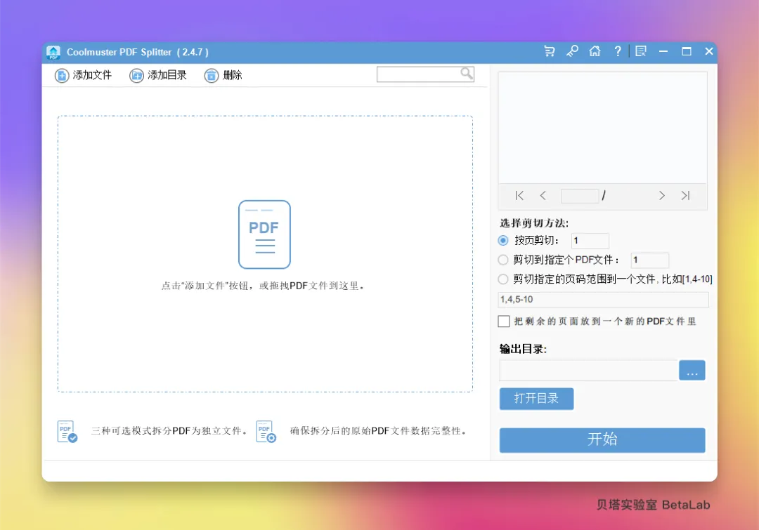 Coolmuster PDF Splitter 是一款功能专一的 Windows 平台 PDF 页面分割软件,旨在帮助用户高效地将大型 PDF 文件拆分为多个小文件或提取特定页面。