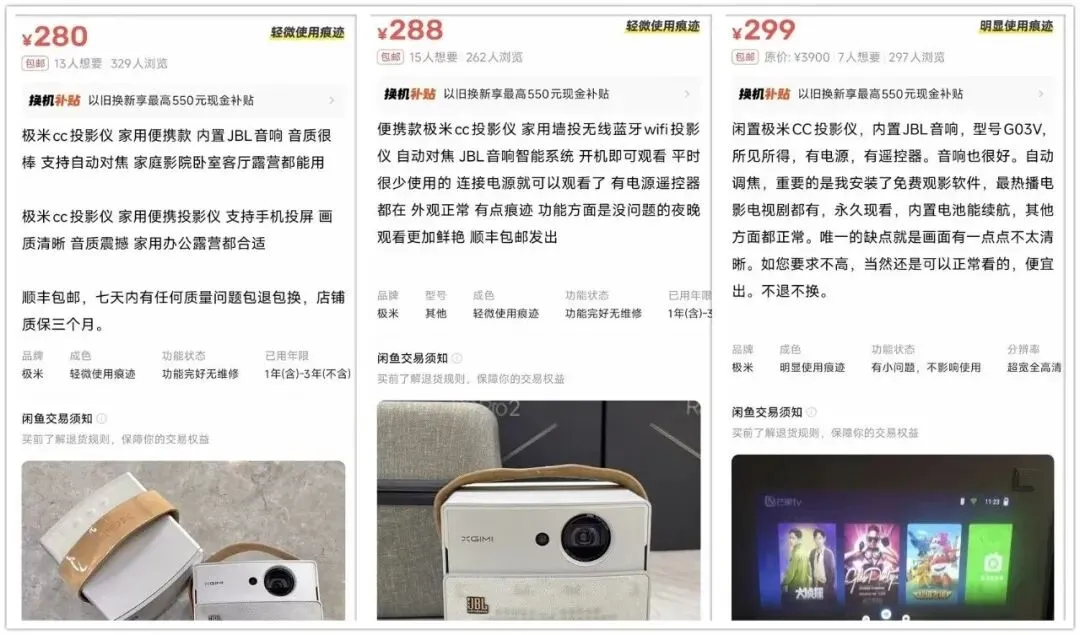 280元能拿下的那台微投我挑好了,极米CC,过年回老家待着没事,看剧看电影用得上,年前下单,年后转手放出去,正常机器基本就亏个邮费,算得清的账,二手市场年年都有人这么玩。
