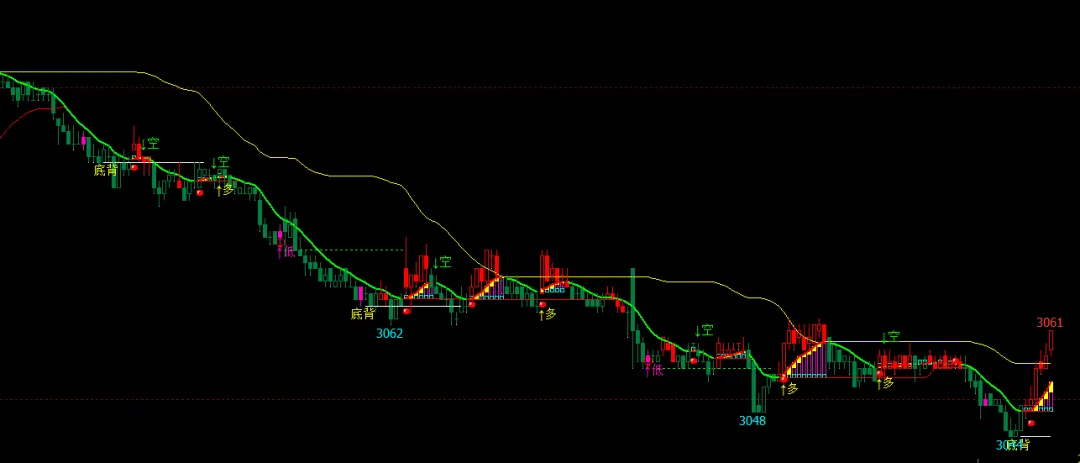 DRAWTEXT(空3 ,H*1.0003,’ ↓空’),COLORGREEN;