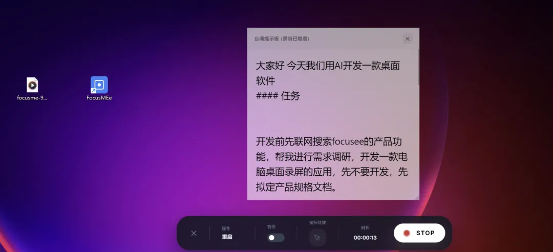 这次我开发了一款桌面录屏APP,名字叫做focusME,目前已经开发完成,可一键安装在我们的桌面,接下来讲解一下整个开发过程。