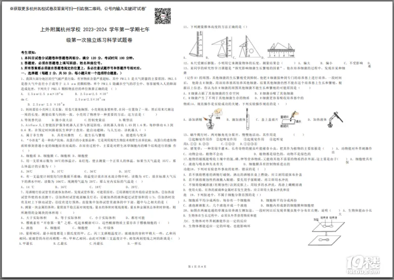 今天为大家准备的是家长上传的上海外国语大学附属杭州学校七上月考科学试卷,获取试卷完整电子版pdf免费下载及参考答案分析请点击文中的小程序!