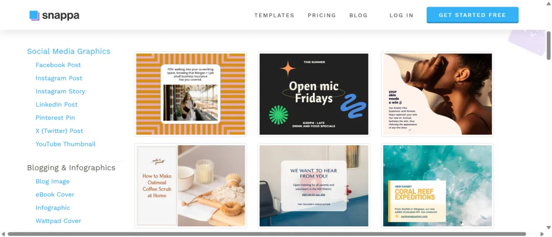 如果你计划在社交媒体上分享情人节祝福,Snappa可能会帮到你。这款工具专门针对各种社交平台(Instagram、Facebook、Pinterest等)的图片尺寸进行了优化,确保你的设计在不同设备上都能良好呈现。