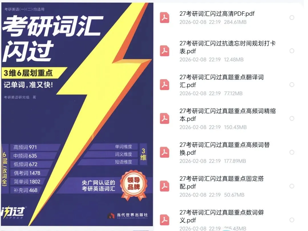 27考研英语《词汇闪过》高清无水印PDF(真题重点翻译词、高频词等)已经更新,有需要自取,获取方式在下方。