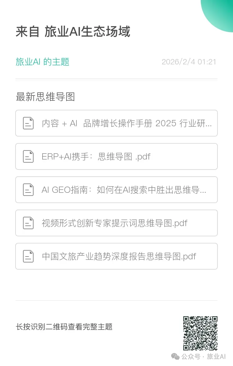 (旅业AI知识库内容过于多,三年旅业AI实践的总结,建议收藏,慢慢找自己需要的,没权限的加管理员备注公司+姓名职位并入群申请同意)链接暂时含旅业AI总知识库的20%-30%左右的内容,有时间会不断更新,不断开源