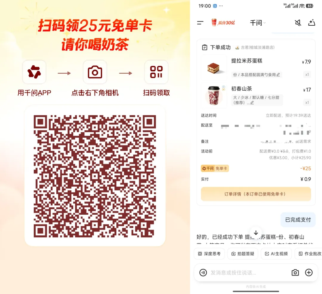 千问APP最新点外卖奶茶教程