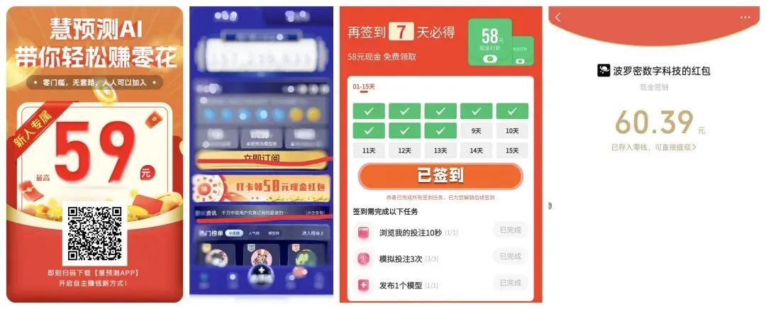 ②惠预测是一款模拟投注的软件,也是针对新人推出的打卡签到功能,首先保存注册进行下载,下载后打开软件一般主页会直接提示跳转到打卡页面,根据任务提示进行打卡签到