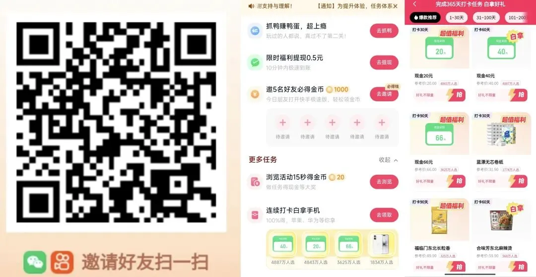 ④快手极速版打卡签到,可以选择红包或者食品手机都可以,每天根据任务签到打卡,可以设置每天的闹钟