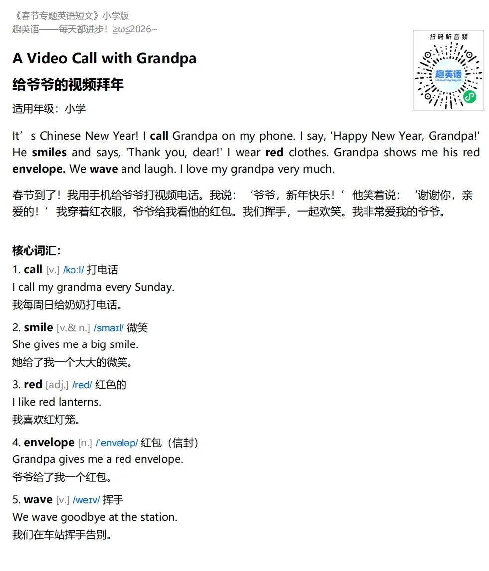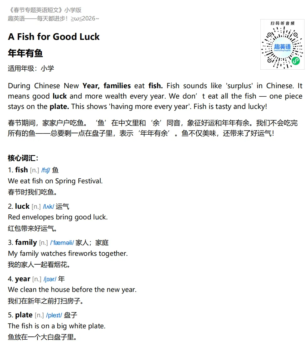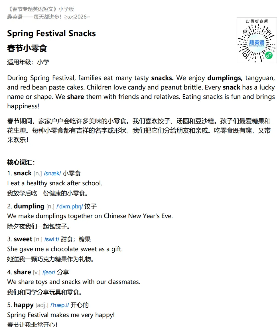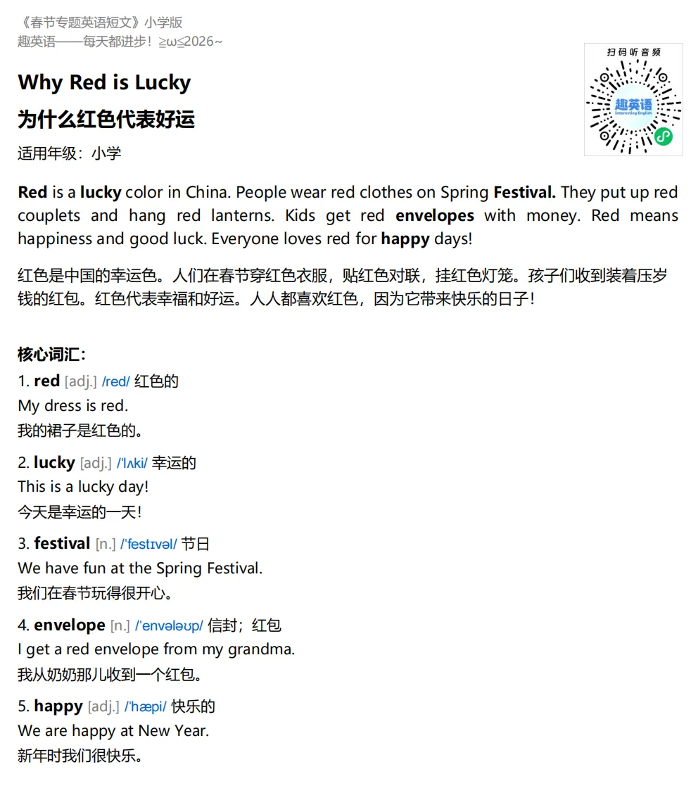 趣英语合集:『春节专题』英语短文36篇PDF+音频(小学版)