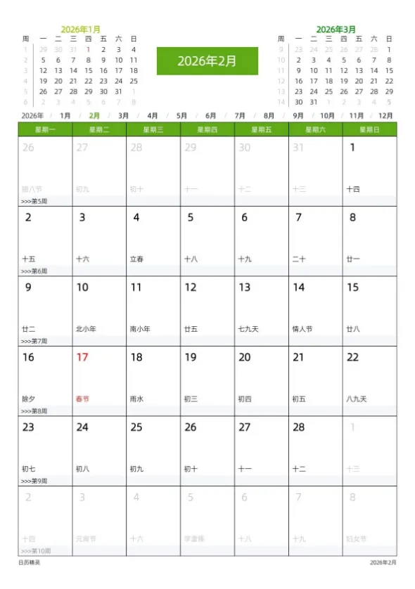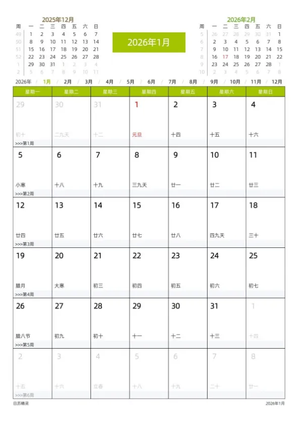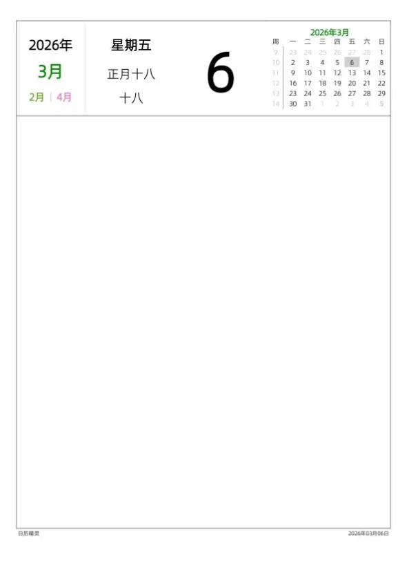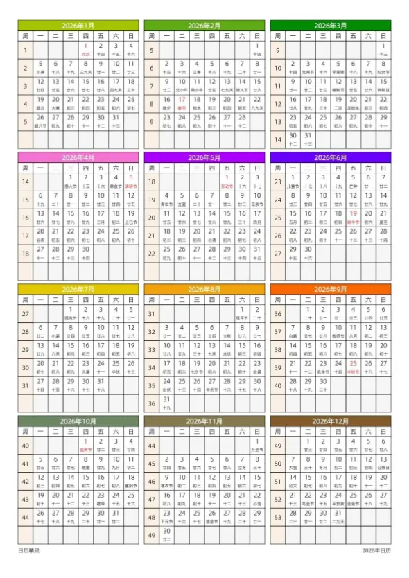 #2026日历打印版免费