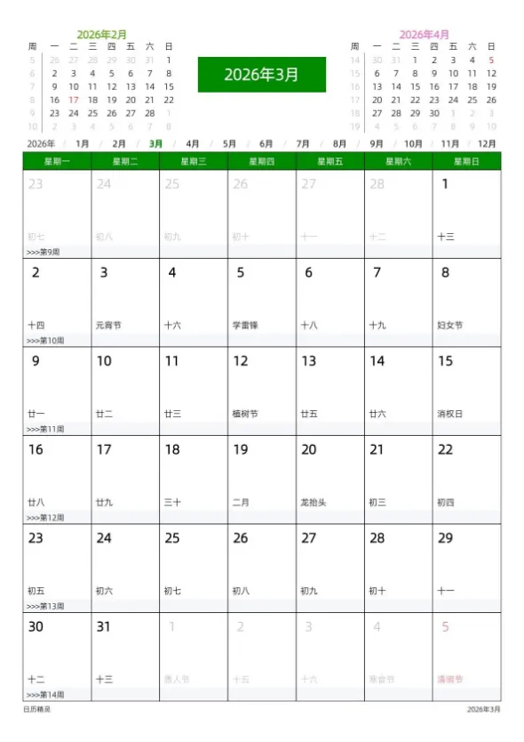 今天分享的是2026全年高清日历台历计划表模板合集