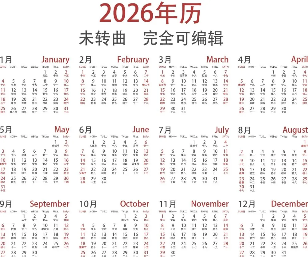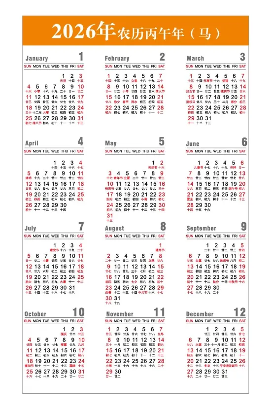 【免费保存】2026全年高清日历台历计划表模板免费下载保存【可打印】