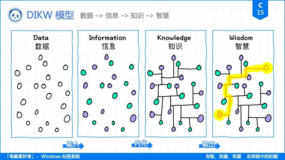 DIKW 模型,可以看做是知识从输入到内化,再到输入的整个过程。