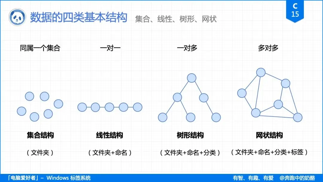 而如果把它们按一定的顺序排列,文件之间的关系就变成线性结构;如果再加入层级和分类,就又会变成了树形结构;