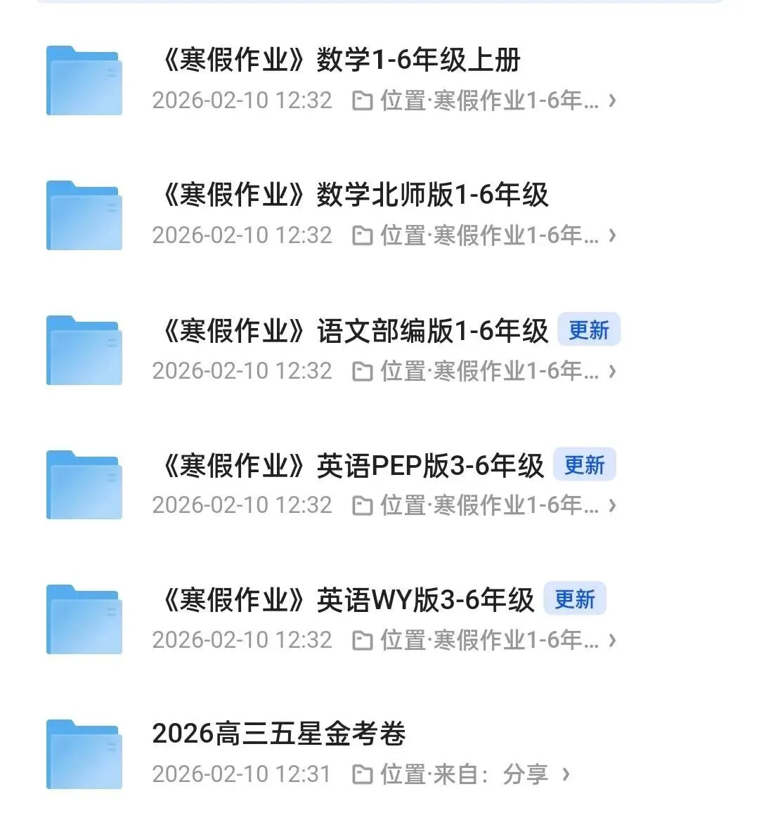 1-6年级寒假作业PDF 如果入群二维码过期,请读公众号里最新文章获取!原版书mp3和国内资源发群里 免费下载全套资料,请拉到文章末尾点击左下角阅读原文 能帮到你希望点赞👍和爱心 ❤️ 往期资源 1.小托福考试官方指南PDF TOEFL JUNIOR OFFICE TEST-Preparation Guide 2.我的第二图书馆PDF+ MP3全套资源My Reading Library 3.美国人天天在用的英文-日常口语表现大全电子版PDF 4.365天英语口语大全电子版PDF全套共6册 5.不一样的卡梅拉绘本电子版pdf 6.剑桥少儿英语词汇表PDF三级全套最强最全最新 7.牛津国际小学英语《Oxford International Primary English》学生书1-6册 PDF全套资源 8.朗文英语世界Longman ENGLISH world全套资源 9..万唯几何辅助线电子版2025 10.王潮霞培优100AB卷1-6年级语数英 11.Grammar space资源1-3级别全套为初段(Kids)、中段(Beginner)和高段(Space)三个阶段 12.英文原版哈利波特1-7pdf 13.Longman English Leap 朗文新飞跃 PDF 14.Charlotte_s-Web夏洛的网原版英文电子书PDF 15.Hip hip hooray电子版教材PDF+ MP3全套资源朗文少儿英语教材 16.unlock第三版电子版资源全套全新 17.国家地理Learning LOOK1-6级原版教材+练习册+答案+ MP3+视频 18.牛津优选经典教材Oxford Smart Choice第四版全套6级,学生&教师书PDF+ MP3+练习册+测试全套资源 19.大数据专业英语教程电子版PDF AI时代必读书 20.牛津技能世界阅读和写作专项Oxford Skills World Reading With Writing 6级全套资源 21.Reading Explorer第三版原版教材PDF+ MP3+视频+词汇表0-7级全套资源国家地理 22.朗文英语教材1-6年级PDF教材+练习册+拓展资料全套 23.小书虫·牛津英语分级读物目录1-6级共48册全 PDF+mp3+译文手册 24.Pearson Gold Experience第二版全套资源青少年英语学习课程 25.Cambridge Grammar and Beyond Essentials剑桥语法与超越初级教材4学生书PDF+音频全套资源 26.7200 Key English Words资源进阶系列英语词汇教材3册全,掌握中高级英语核心词汇 PDF+mp3全套 27.西游记PDF电子版高清原版 28.培生少儿英语教材原版PDF《Pearson Team Together》7级全学生+教师用书+练习册+音视频等 29.外研社英语分级阅读绘本reading journey PDF+ MP3+ video1-5级全套资源 30.英语词根词缀记忆法pdf高清200个词根词缀 31.《班级小丑乔治·布朗》系列George Brown, Class Clown Series 高清原版电子书+ mp3 32.给孩子读的战争史1-7册+音频Great Battles for Boys Series – Joe Giorello 33.科学小超人弗兰妮《Franny K. Stein, Mad Scientist》1-10册电子书+ mp3 34.Billie B. Brown Series原版电子书+音频mp3全套资源 35.santa and son原版电子书+音频全套资源 36.phonics monster电子书+音频+练习册全套资源自然拼读怪兽 37.《南瓜女王时刻》原版电子书Hour of the Pumpkin Queen – Megan Shepherd 38.《十岁的医生德克斯特》PDF+mp3+ Video Dexter Procter the 10-Year-Old Doctor 39.《一勺时间》原版电子书+音频A Spoonful of Time – Flora Ahn 40.《病态医学史》pdf+ mp3 A Sick History of Medicine-Jelena Poleksic儿童趣味科普 41.世界上糟糕的老师大卫威廉姆斯系列pdf+ mp3 The World’s Worst Teachers-David 42.《超级侦探》大卫·威廉姆斯Super Sleuth-David Walliams 43.《比利·休尔:小企业家》系列 Billy Sure Series 1-12册原版电子书 44.怪诞小镇英文版资源电子书pdf+ avoid+ video全套 45.bob books 电子书+ mp3全套资源 46.柠檬水大战原版书pdf+ mp3The Lemonade War Series – Jacqueline Davies 点击左下角阅读原文下载资源 因版权问题如果资源未完全展示 关注公众号私信获取更多资源 添加好友获取资源更便捷。 所有资源都是免费分享如果能帮到你, 希望点赞👍和爱心❤️