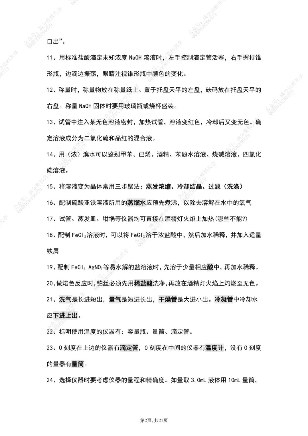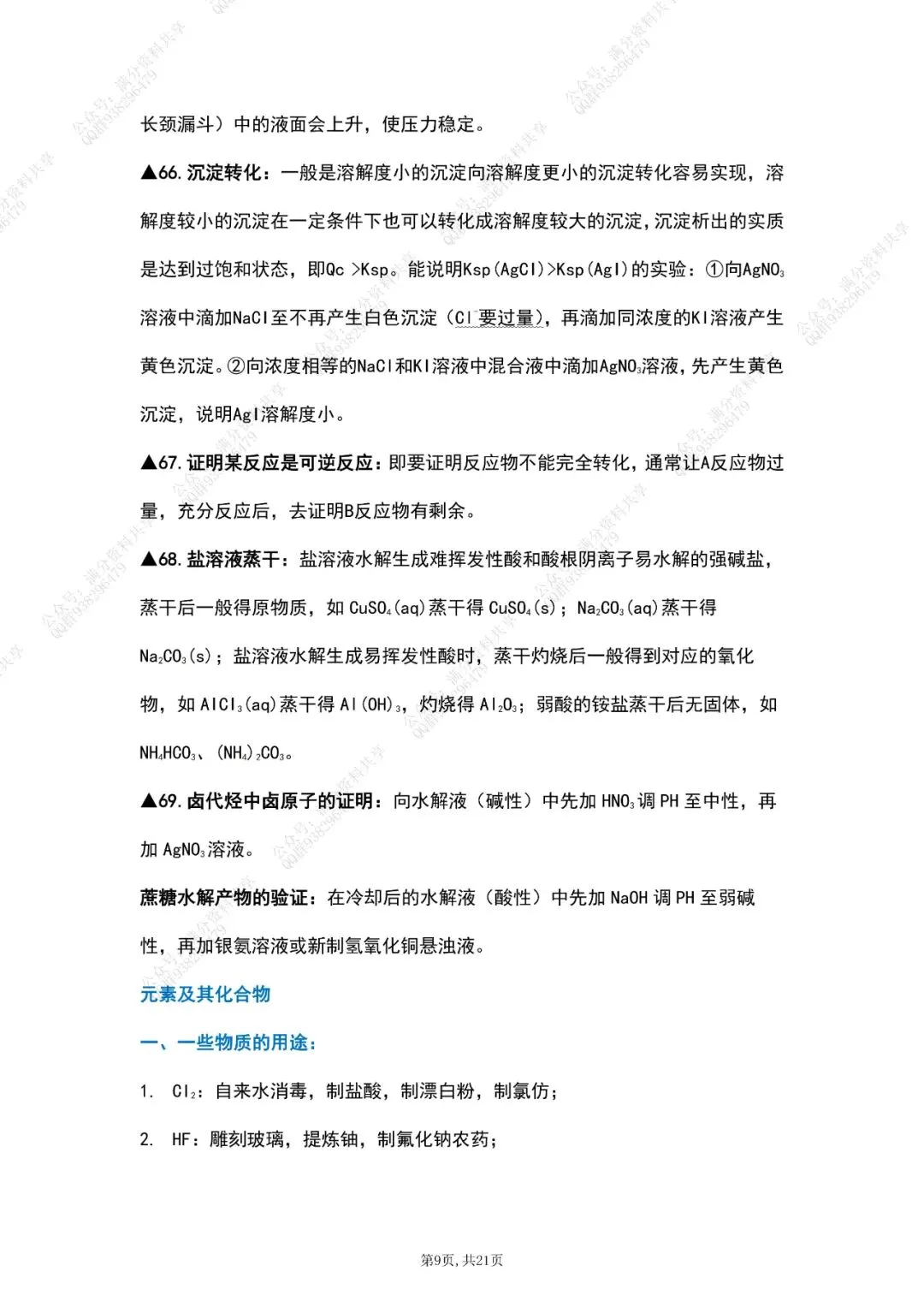 高三化学重要知识点回顾(pdf分享) 点击图片可观看高清版,文末有获取打印版方式 (完整版21页,部分展示) 领取完整电子版: ①:点一点右下角的“赞”和“在看”,感谢! ②:点击“关注”回复“高中资料”获取资料 点击下方“公众号”关注,可以进入主页哦!