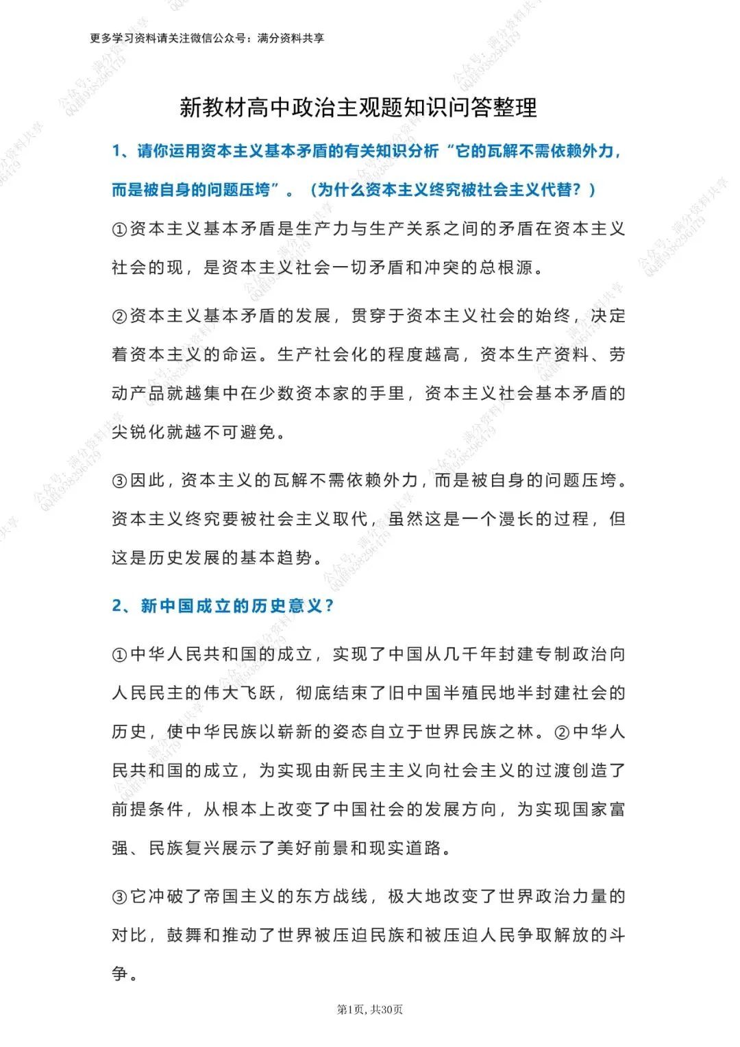 新教材高中政治主观题知识问答整理(pdf分享) 点击图片可观看高清版,文末有获取打印版方式 (完整版30页,部分展示) 领取完整电子版: ①:点一点右下角的“赞”和“在看”,感谢! ②:点击“关注”回复“高中资料”获取资料 点击下方“公众号”关注,可以进入主页哦!