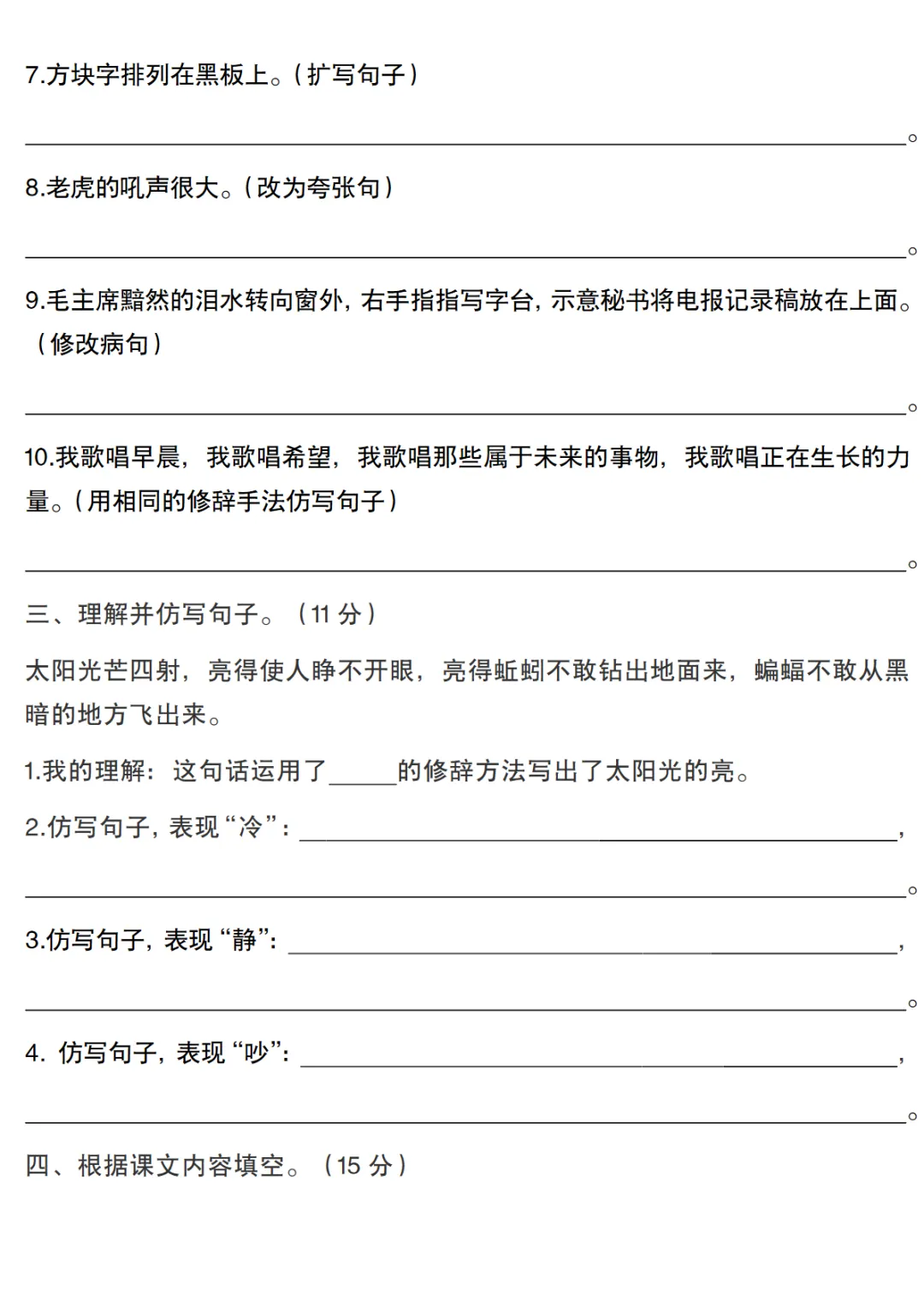 【免费下载】五年级(下)语文 句子专项(含答案)