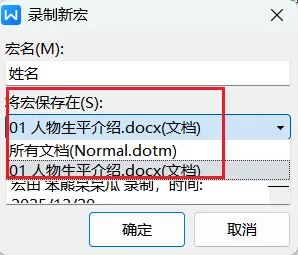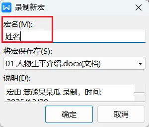 刚才的编辑已经自动保存在了文件名叫姓名的宏文件中。