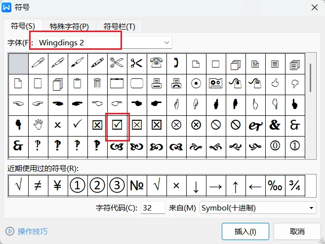 然后在字体Wingdings 2中能够找到合适的复选框的勾选效果