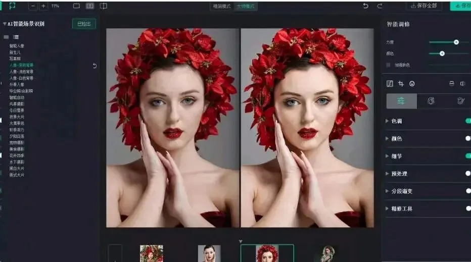 – 自动区分人像/风景/建筑,匹配独家预设库