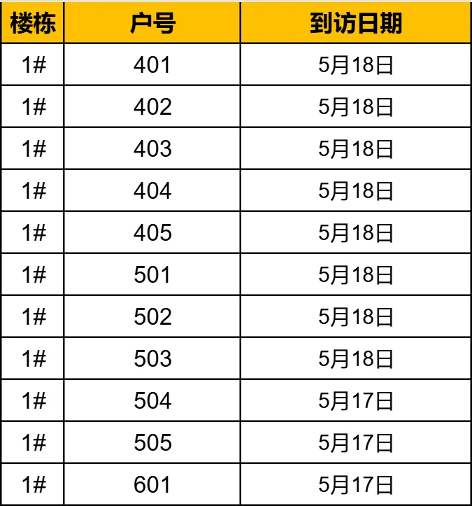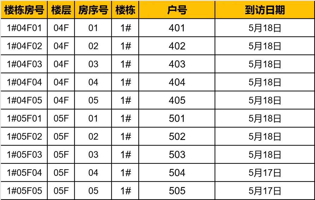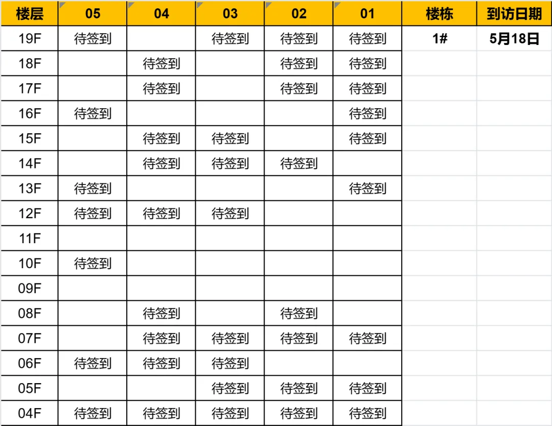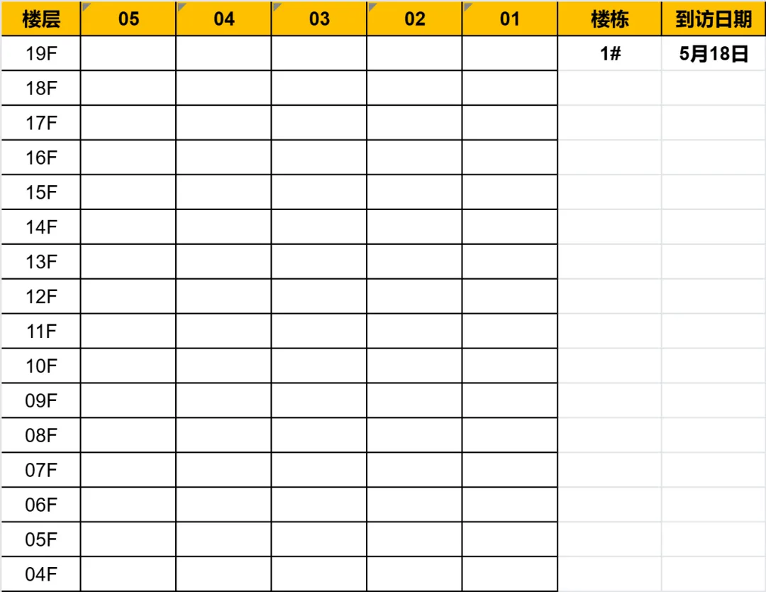 表格右侧要包含【楼栋】和【到访日期】,便于进行快速的引用操作。