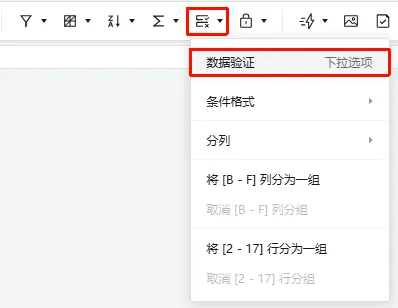 选中这些单元格,通过【数据】-【数据验证】-【下拉选项】,为动态看板设置显示状态。