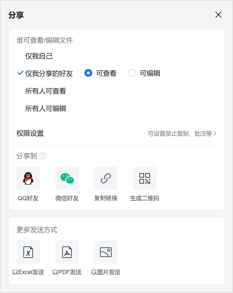 2、为了防止无关人员查看,在表格分享时不要选择“所有人可查看”和“所有人可编辑”。