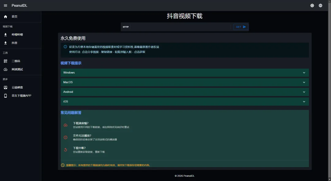 简单来说,PeanutDL 是一个专门用于下载抖音(Douyin)和 TikTok 视频的在线工具。