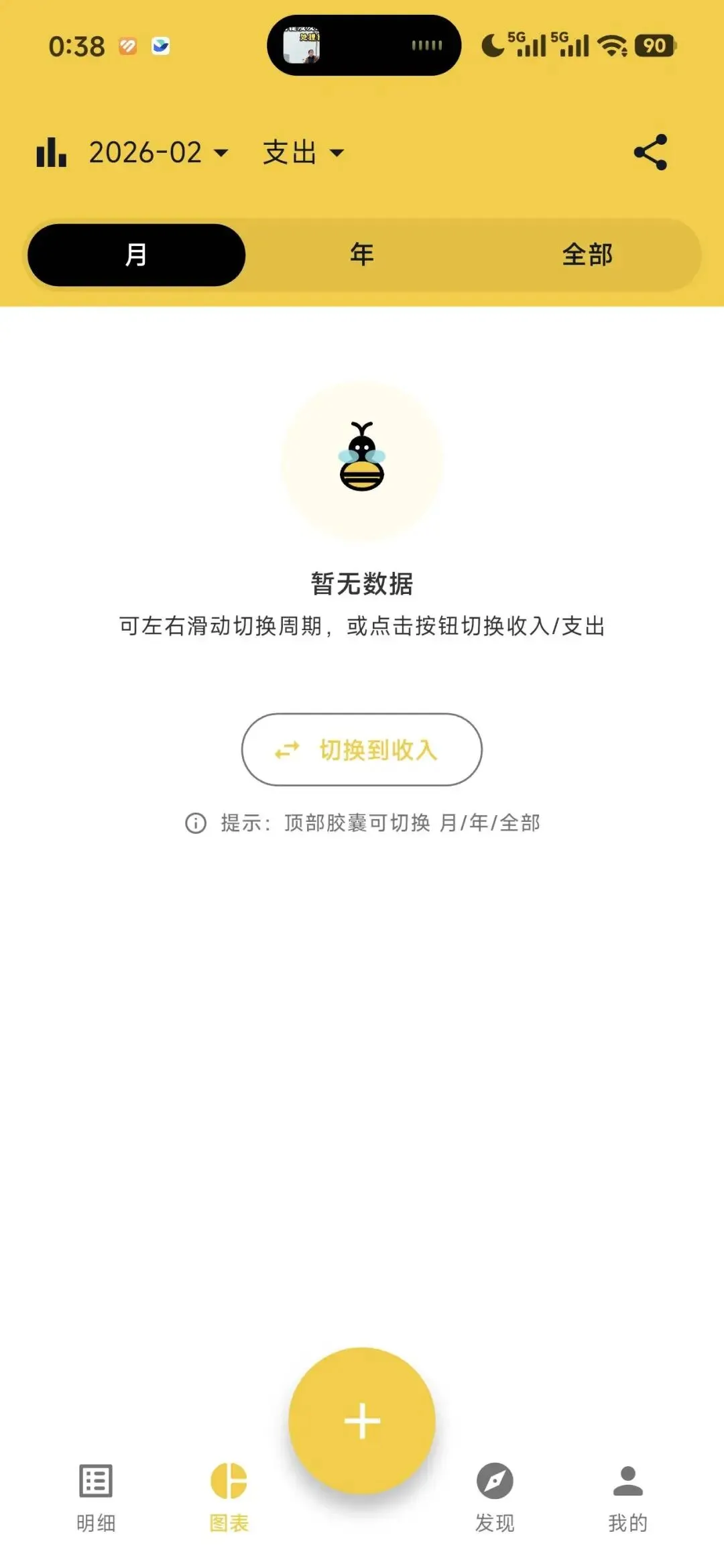 主界面如下十分简洁,可以看到当月的支出收入结余
