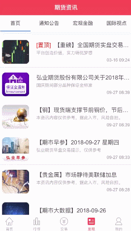 弘运通APP资讯功能强大,覆盖面广,多维度展示最新期货资讯,除了弘业期货专业投资咨询师撰写的每日研报、保证金通知、各品种研究,还网罗各大知名财经媒体当日最新评论,可由弘运通一个APP掌握多方资讯,无需切换。