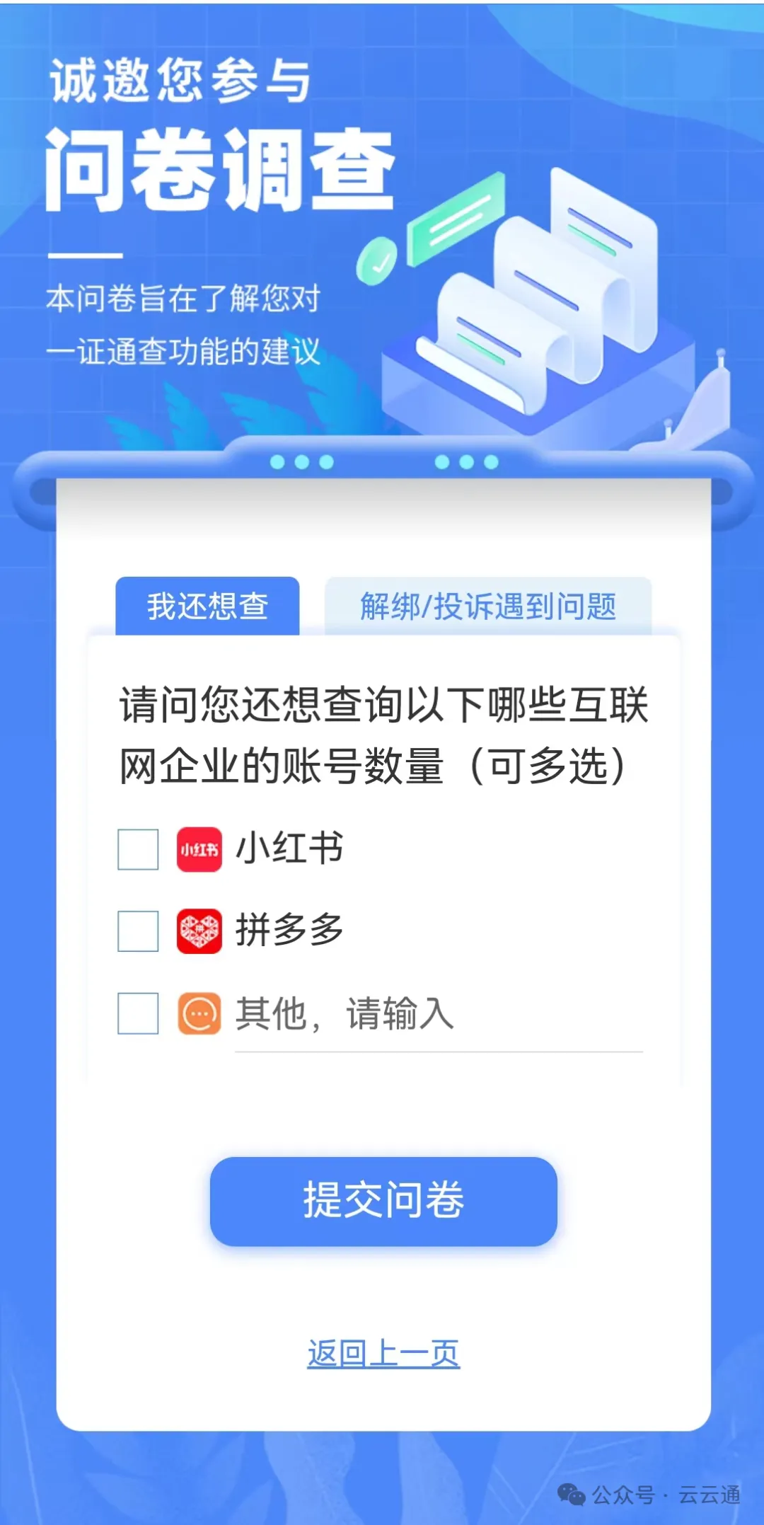 如果需要解绑小红书、拼多多等互联网账号可点击左侧我还想查,进入以下界面:
