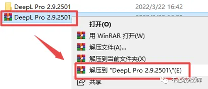 1.选中下载的压缩包,然后鼠标右键选择解压到”DeepL Pro 2.9.2501″(没有解压选项点这里)