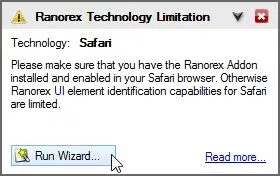 如果Ranorex的Safari浏览器扩展插件未安装或未启用,那么Safari浏览器的识别技术限制弹窗会出现。