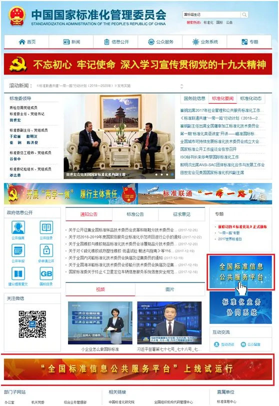 您是不是抱怨过标准难找!标准制修订过程还不够公开和透明!想对标准内容及实施发表点意见或建议比较难啊?为了解决您的这些困扰,标准委用两年时间组织研发建设的“全国标准信息公共服务平台”终于在2017年12月28日正式上线试运行了!
