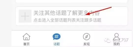 (1)点击话题,然后点击箭头所指处,进入话题列表